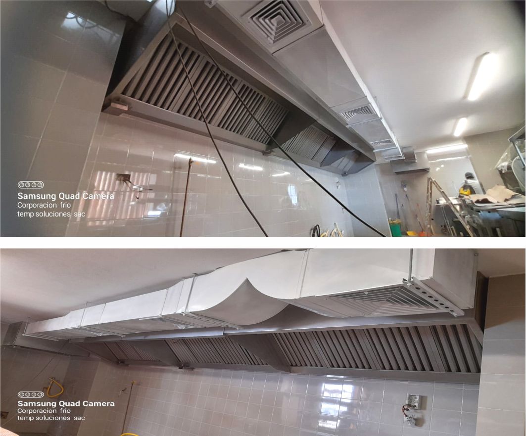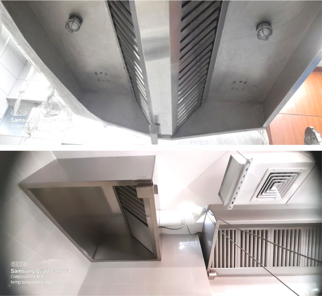 Diseñamos y fabricamos todo el proceso de ventilación de cocina: extractor, campanas en acero inoxidable y galvanizados, ventiladores, filtros y ducteria en plancha de acero inoxidable, galvanizado, fierro negro. Brindándoles soluciones satisfactorias a medida de cada necesidad del cliente. realizamos limpieza de campanas extractoras, industriales y mantenimiento a todo el sistema de extracción de grasa (ducto,extractor,hélice,etc.), es necesario un mantenimiento y desengrase con una frecuencia adecuada, para evitar riesgos de incendios, contaminaciones al producto y mejorar el rendimiento del sistema.